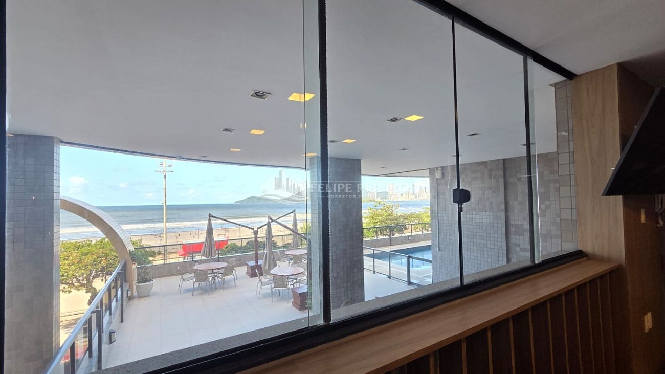 • Apartamento em Edifício Frente Mar com vista mar lateral da sacada.